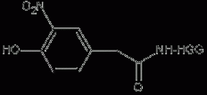4-Hydroxy-3-nitrophenylacetyl hapten is conjugated to HGG (Human gamma globulin) lysine by amide bonds.